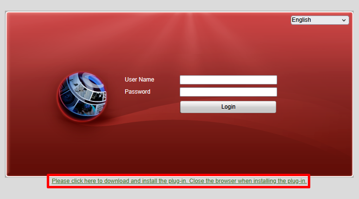b. Download and the Hikvision plugin by clicking on the link at the bottom of the login prompt.