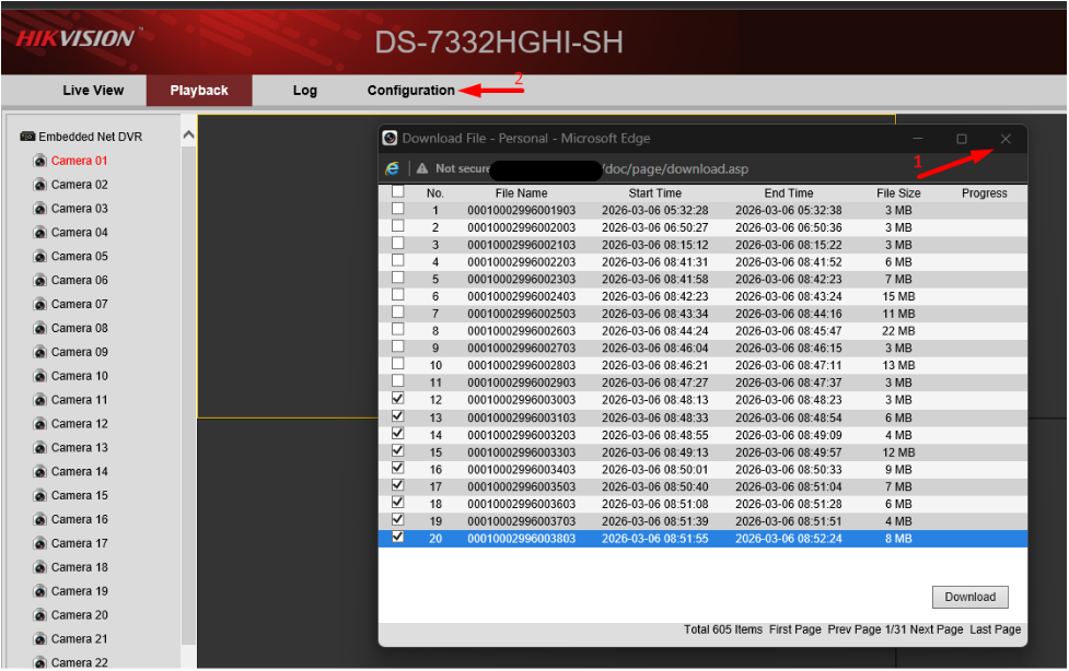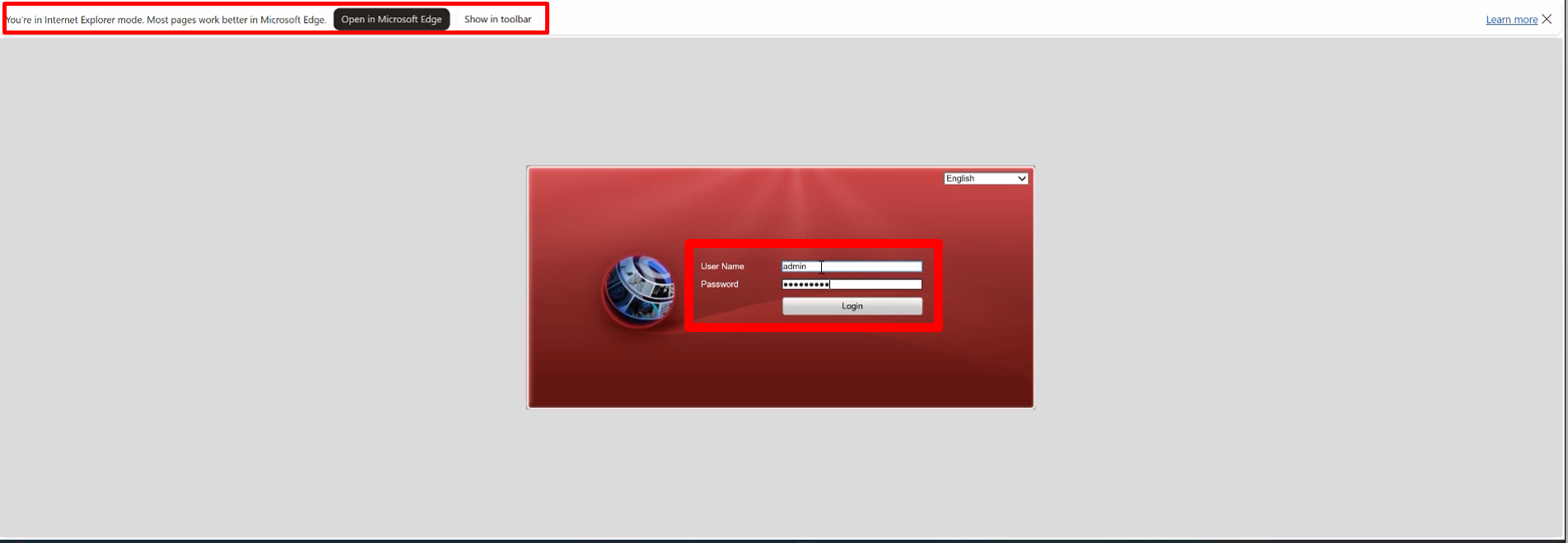 e. Refer to Step 1a and 1b to reopen Microsoft Edge in IE mode. Login in with your credentials to Access the DVR.