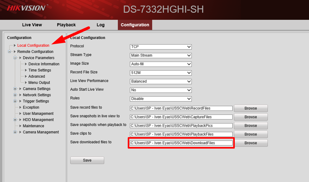 d. On the configuration tab, hit “Local Configuration”. The recordings are located on the file directory listed under “Save downloaded files to”.