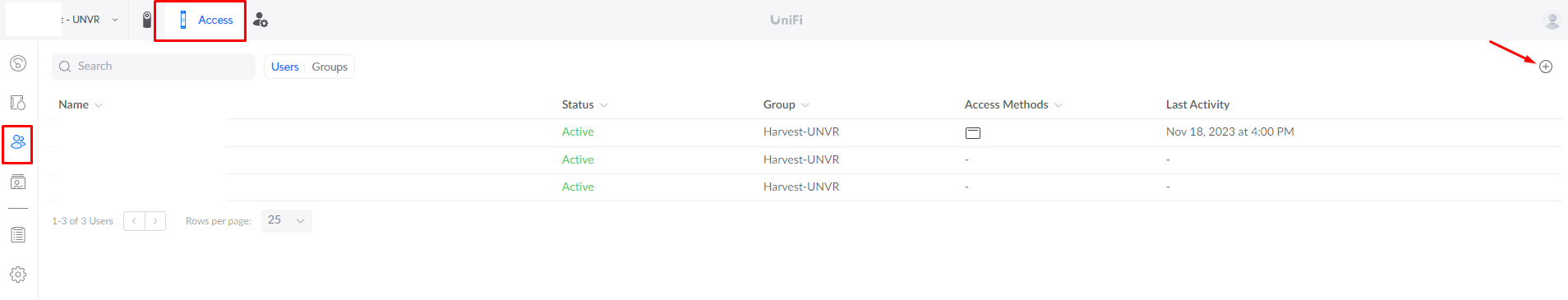1. Click on "Access" on the top, then "Users" on the left-hand side and then click on the (+) sign on the right.