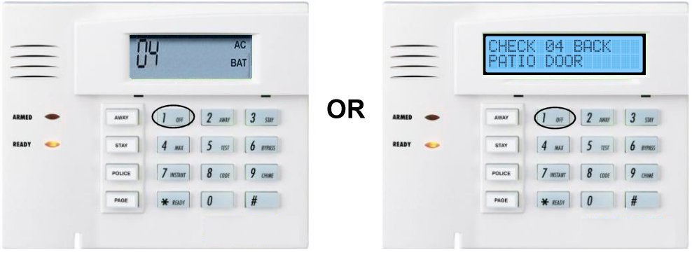 1. Enter User Code then press 1 OFF to silence trouble beeps