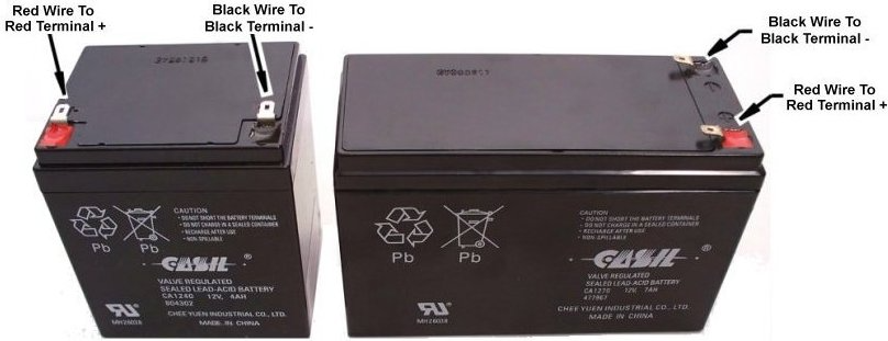 - Reconnect the 12-volt, 4–7 amp, battery ensuring the red wire is connected to the red terminal and the black wire is connected to the black terminal.