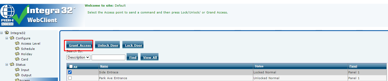 3. Put a check mark on the Door that you wanted to open and then click Grant Access.