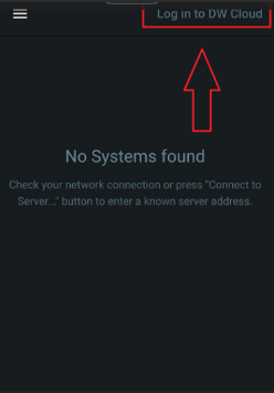 After logging in, the app will automatically show a list of systems connected to your DW Cloud account.